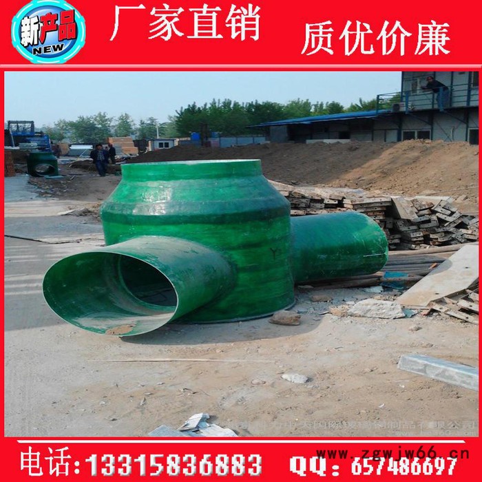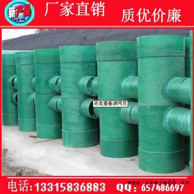 3、FRP检查井的井座上可任意开孔,用胶粘形式连接支管,连接时节省了配件,支管可选水泥管、u-pvc管、铁管、双臂波纹管。