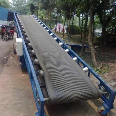大倾角裙边输送机广泛用于、冶金、建筑、粮食、化工、电力等部门,具有通用带式输送机结构简单、运行可靠,维修方便等优点,还具有可大倾角输送,结构紧凑,占地少等优点。作为一般用途的散状物料连续输送设备,但由于其采用的是具有波伏挡边和横隔板的输送带,是大倾角(或垂直)输送的理想设备