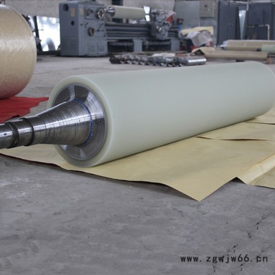 5.聚氨酯胶辊的物理性能,长期使用胶辊不会变硬、老化,而且耐撕裂性能、回弹性能良好,耐磨性能好,因此使用寿命长,容易保存,长期存放不影响使用效果;能够承受高压力、高转速、高温、高湿的生产环境。实验表明,聚氨酯胶辊的抗张强度、耐磨性是天然橡胶胶辊的3倍和5倍;压缩不变形、回弹性较好;聚氨酯胶辊使用寿命为一般胶辊的1倍以上。