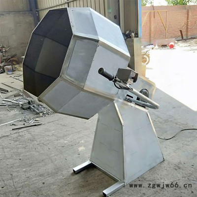 八角调味机圆球设计为八角造型,避免了圆球调味机原料不滚动的弊端,充分搅拌原料,并且调味机筒内没有死角、卫生清理更加方便,可以扳倒出料,使用方便。球体为不锈钢材料。