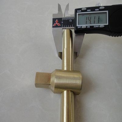 1、铝铜合金防爆工具是用贵重稀有金属合成、熔炼、锻造而制成工具后,表面呈黄色。工作面硬度HRC25°以上,抗拉强度δ b>75-85kgf/mm2,其它技术指标全部达到国外同类产品先进水平。在易燃气体乙烯(浓度7.8%)空间连续使用均确保安全,冲(撞)击、摩擦、落锤均不产生火花**。