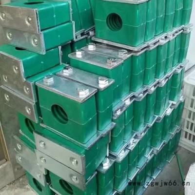 叠起装配,导轨可焊在基础上,或用螺钉固定,先装上下半个管夹身,放上需固定的管子再放上上半个管夹身,用螺钉固定,通过防松盖板防止它转动。然后安装第二个管夹,方法同上。