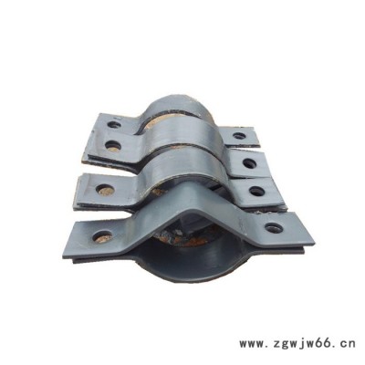 四螺栓管夹管夹 根据联接方式不同,每类管夹有带底板和不带底板两种,前者管夹用螺栓与底板联接,底板焊在支架和机体上,后者管夹用螺栓与支架直接联接。