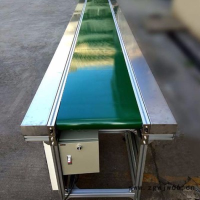 全铝型材皮带线又叫流水线、皮带拉,是输送设备中比较经济的一种。广泛应用于电子、轻工、食品、制药、日用化工等行业。输送量大、平稳,物料与输送带没有相对运动.噪音比较小,,铝合金大架上料机,结构简单,维护方便,能耗小,成本低.全铝结构,拆,PVC流水线皮带机,卸方便.
