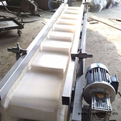 4.轻型皮带输送机既可以采用单条的皮带输送线,也可以同时采用2条或3条平行的皮带输送线并列输送而共用电机驱动系统;各条输送线的方,裙边隔挡输送机,向既可以相同也可以相反,以将不合格的产品反方向送回。