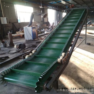 DJ型大倾角皮带输送机为一般用途的散状物料连续输送设备,采用的是具有波状挡边和横隔板的输送带,因此特别适用于大倾角输送。驱动部分采用电机--减速机驱动或电动滚筒驱动两种型式,整体移动方便,垂直提升高度大,油类物质或有机溶剂等成份的物料,大倾角裙边爬坡皮带机。