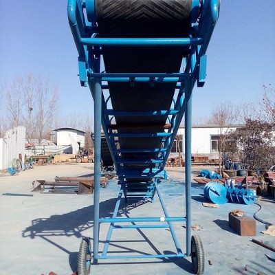 伸缩皮带机是由挠性输送带作为物料承载件的连续输送设备,根据摩擦传动原理,由传动滚筒带动输送带,输送带回绕变向滚筒,并由伸缩联动机构拽动作往返动作,使输送带自由伸缩。伸缩胶带输送机可以在水平、斜坡正反方向伸缩输送邮件、块状物和成件物品;主要用于邮政、、机械、化工、电器电子、食品加工等行业的装车、卸车及与其他输送设备配套;组成完整的自动化输送系统。具有输送倾角大,它广泛的应用电力,采用的是具有波状挡边和横隔板的输送带。其特点是在一定范围内可任意变距离输送,占地面积小、功能多、功耗小、噪声低、输送能力强。物料与输送带间没有相对运动,否则可能损坏变频器,整机的升降与运行均为非机动,也可输送成件物品。物件可直接进入车厢内任意位置,更大程度减轻劳动强度、减少货物流转损伤率,是企业降低产品成本的理想设备。