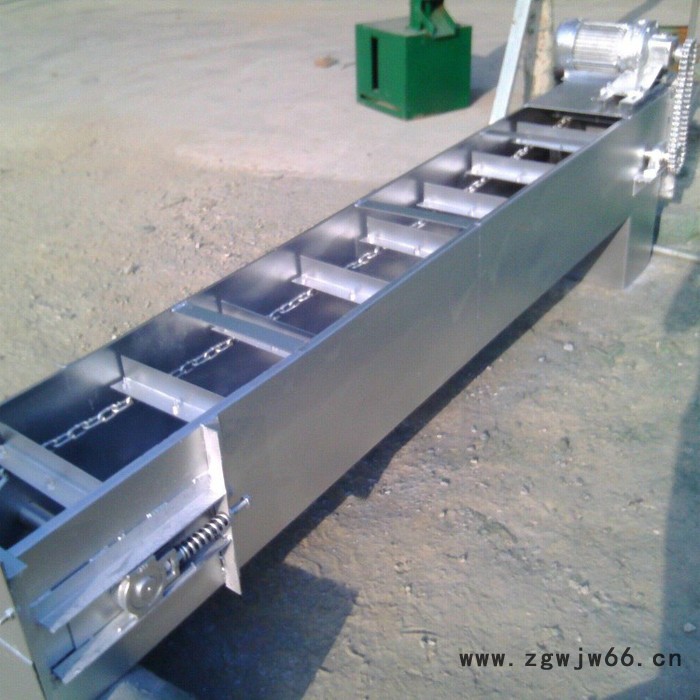 进入机槽的物料受到刮板链条在运动方向的压力和自身重量的作用,在物料间产生内磨擦力,这种磨擦力保证了物料层之间的稳定状态,并能克服物料在机槽内移动而产生的外磨擦阻力,使物料形成随刮板链条一起运动的连续的整体的物料流而被输送。