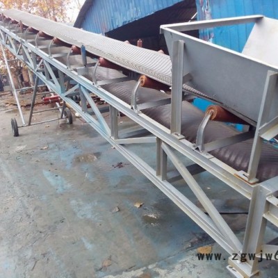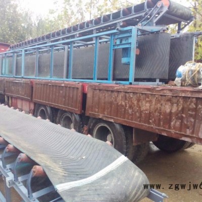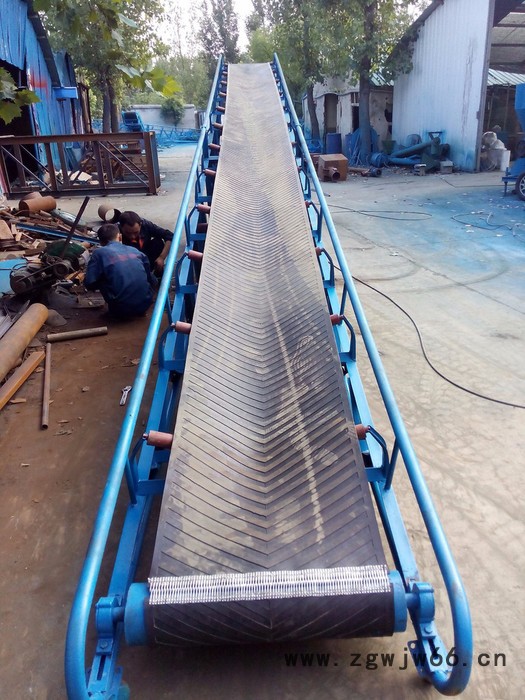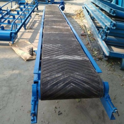 可以用于水平运输或倾斜运输,使用非常方便,广泛应用于现代化的各种工业企业中,如:矿山的井下巷道、矿井地面运输系统、露天采矿场及选矿厂中。根据输送工艺要求,可以单台输送,也可多台组成或与其他输送设备组成水平或倾斜的输送系统,以满足不同布置型式的作业线需要。工作原理: 主要由两个端点滚筒及紧套其上的闭合输送带组成。带动输送带转动的滚筒称为驱动滚筒(传动滚筒);另一个仅在于改变输送带运动方向的滚筒称为改向滚筒。驱动滚筒由电动机通过减速器驱动,输送带依靠驱动滚筒与输送带之间的摩擦力拖动。驱动滚筒一般都装在卸料端,以增大牵引力,有利于拖动。物料由喂料端喂入,落在转动的输送带上,依靠输送带摩擦带动运送到卸料端卸出。