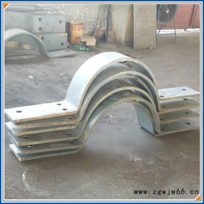 下半部分,放上需固定的管子。再放上另一半管夹身和盖板,用螺钉拧紧。 切忌直接焊接已装好管夹的底