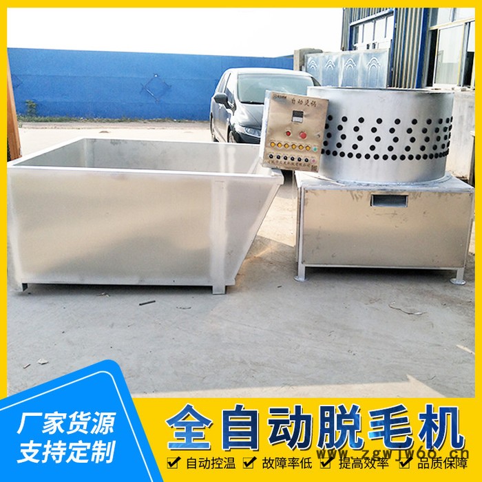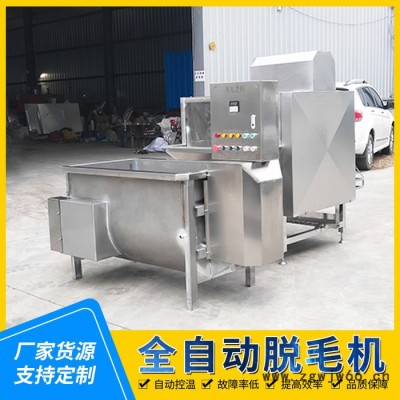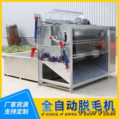 电机带动两个刨毛滚筒转动,使夹在两者之间的猪体迅速的翻滚,猪体与刨片、猪体及猪体之间相互摩擦,从而达到去毛的目的。猪体进入脱毛机前进行浸烫,烫毛效果的好坏直接影响脱毛效果,机内装有一喷水管,在刨毛过程中喷淋温水,以冲洗猪体上的残毛、血污等。捞耙下降以前,注意检查捞耙下面有无猪体及杂物,要及时清除,以免捞耙下降时,遇到障碍物而使机器损坏。全自动脱毛机脱毛干净操作简单,整羊脱毛,代替松香去毛法,整羊脱毛机打毛干净,节约人工,降低成本。