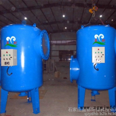 全程综合水处理器主要由**碳钢筒体、特殊结构的不锈钢网、高频电磁场发生器、电晕场发生器及排污装置等组成。通过活性铁质滤膜,机械过滤器变径孔阻挡及电晕效应场三位一体的综合过滤体,吸附、浓缩在实际运行工况下各种水系统形成的硬度物质及复合垢,降低其浓度,达到控制污垢及大部分硬度垢的目的。并通过换能器将特定频率能量转换给被处理的介质——水,形成电磁极化水,使其成垢离子间的排列顺序位置发生扭曲变形,当水温升高到一定程度时,处理的水需经过一段时间方能恢复到原来的状态。在此阶段,成垢的机率很底,因而达到控制形成硬度垢的目的。同时器壁金属离子受到抑制,对无垢系统具有防腐蚀作用。此外,电磁极化水还可有效地杀灭水中的菌类、澡类等,有效地抑制水中微生物的繁殖。所以,全程综合水处理器在系统正常运行状态下,可以完成防结垢、防腐,杀菌,灭藻,超净过滤,控制水质的综合功能。