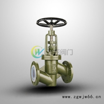 沃茈阀门生产销售的J41F46衬氟截止阀适用在 -50~150℃ 的各种浓度的王水、流酸、盐酸、氢氟酸和各种有机酸、强酸、强氧化剂,还适用于各种浓度的强碱有机溶剂以及其它腐蚀性气体,液体介质的管路上使用。