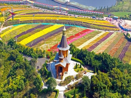 首先参观于2007年09月28日正式开放的【湿地花园】,湿地花园是一个以花海景观为载体、以大地艺术展示为特色,集观光、科普教育、户外游乐和特色运动于一体的湿地山野体验区。四季花田、艺术森林、湿地廊桥、观光气球、旋转花车、山地自行车等项目散布其中,在鲜花、绿树、竹林和果园的掩映下,犹如仙境般梦幻!