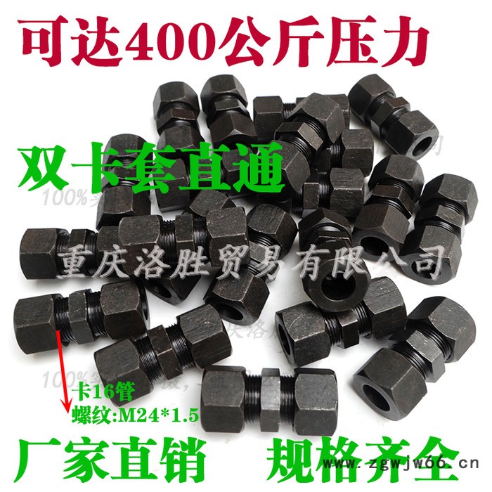 液压高压胶管接头 碳钢接头 卡套直通接头Φ16