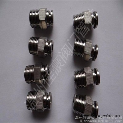 本公司生产的气动快速pu管接头,主要材质有不锈钢304,316,316L,这种材质耐腐蚀性强,寿命长,外观漂亮,不过比市场上的塑料和铜的气管接头,稍微要贵点