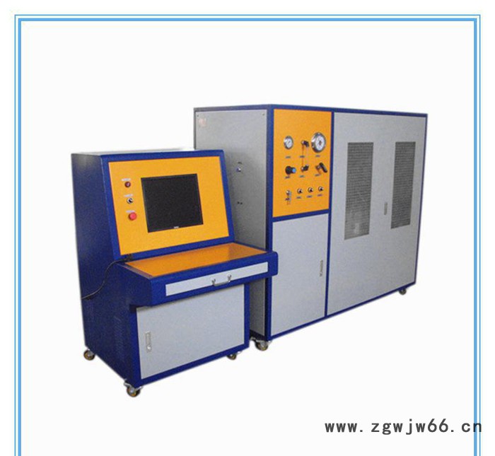 整个设备由两部分组成,计算机控制及动力源箱体部分和试验箱体及水箱部分。由计算机设定试验参数,压力传感器检测系统压力,经过数据采集卡进入计算机,计算机**捕捉爆破峰值,计算机操作控制整个测试过程。