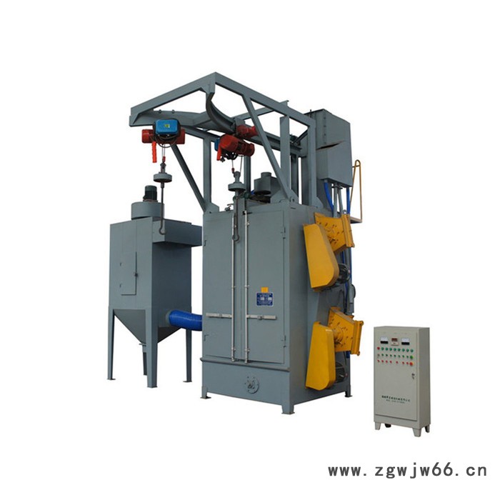 吊钩式抛丸清理机是根据用户工件的要求而设计制作的一种新型专用设备,主要用于铸件及结构件的抛丸清理。通过抛丸清理,不但可以去除工件表面的锈蚀、氧化皮、型砂等,还可以降低工件的内应力,提高工件的抗疲劳强度。吊钩式抛丸机可用于对机械制造(包括轻工机械、建筑机械、工程机械、矿山机械等)、压力容器、汽车、船舶、建筑、化工、电机、机床等行业的中小型铸锻件进行表面清理或强化,用于提高产品零部件的外观质量和表面工艺状态。