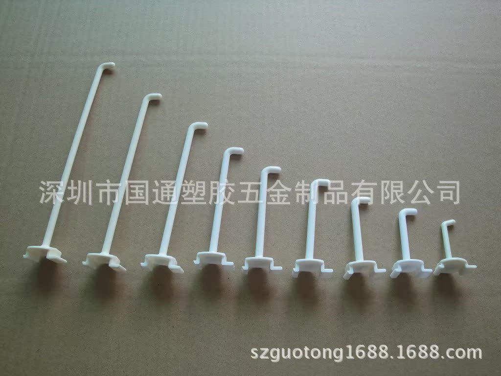 国通塑胶,生产各种塑料提手、塑料挂钩、超市挂钩、超市挂条、PP提条、塑胶提手、塑胶挂钩、饮料提手;以“展示用品,包装制品配件”主要产品。专注塑料、五金制品加工, 经验丰富、技术过硬、质量保证、价格合理、供货及时、顾客至上,本厂具有CAD设计能力,自制模具、制模快捷、便宜。 可根据客户要求定做各种国际通用颜色。欢迎来样板共同开发合作!