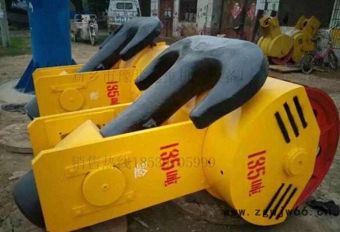 单钩制造简单、使用方便,但受力情况不好,大多用在起重量为80吨以下的工作场合;起重量大时常采用受力对称的双钩。叠片式吊钩由数片切割成形的钢板铆接而成,个别板材出现裂纹时整个吊钩不会破坏,安全性较好,但自重较大,大多用在大起重量或吊运钢水盛桶的起重机上。吊钩在作业过程中常受冲击,须采用韧性好的**碳素钢制造。