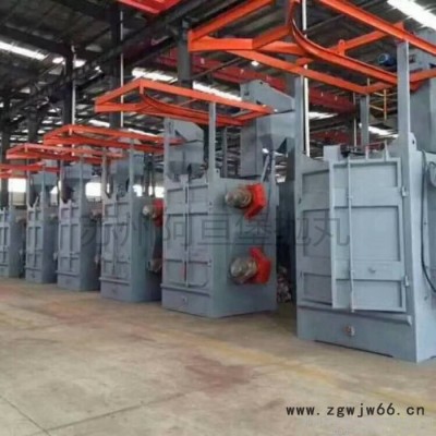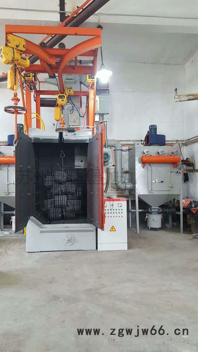 吊钩式抛丸机作为抛丸清理机的常用机型,适用于多品种、大中小批量的铸件、锻件、、钢结构件、铝合金件、焊件及热处理件的表面清理或强化,包括易碎和形状不规则的工件。分为单吊钩式和双吊钩式两种主要形式,室体采用全封闭结构,特种耐磨合金铸铁护板,无抛丸飞溅现象,且具有无地坑、结构紧凑、生产效率高等特点。