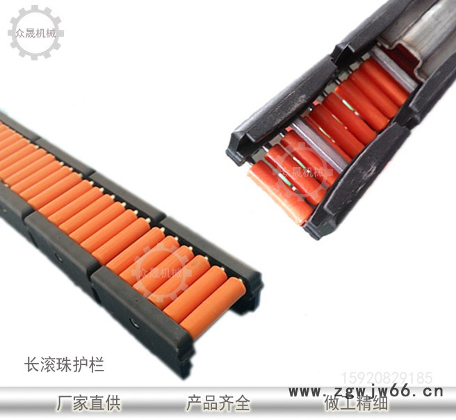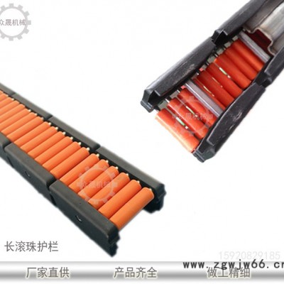 可降低输送物和护栏间摩擦,高度可变化,有单排滚珠护栏,双排滚珠护栏,三排滚珠护栏,四排滚珠护栏。