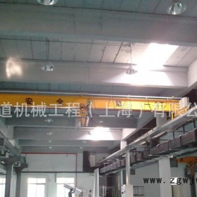 端梁配置平轮或双轮缘车轮、抗磨轴承、大车缓冲块、防脱轨端板