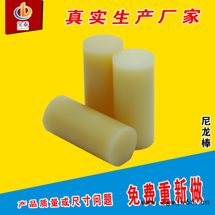 ??尼龙棒具有韧性好、耐磨力强、耐油、抗震、拉伸、弯曲强度好,并具有吸水性小、尺寸稳定性好等特点,因而被用来加工各种耐磨的高强度零件。产品用途广泛,是以塑代钢、铁、铜等金属的好材料,是重要的工程塑料;铸型尼龙广泛代替机械设备的耐磨部件,代替铜和合金作设备的耐磨损件。适用于制作耐磨零件,传动结构件,家用电器零件,汽车制造零件,丝杆防止机械零件,化工机械零件,化工设备。如涡轮、齿轮、轴承、叶轮、曲柄、仪表板,驱动轴,阀门、叶片、丝杆、高压垫圈、螺丝、螺母、密封圈、梭子、套简、轴套连接器等。
