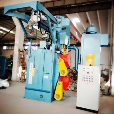 吊钩系列的设备,是把工件吊起来放在实体里面进行抛打,它分为单钩的和双钩的,工件要有吊挂点,那种小型的还可以设计工装进行抛打。