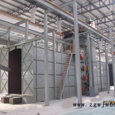 该机是我公司根据市场需求研制开发的新型高效倾斜滚筒式抛丸清理机。该机自动化程度高,清理效果好,即可单机作业,也可配线使用。因为被清理工件在该机翻滚区无相对运动部件,从结构上避免了传统履带式抛丸机(32系列橡胶履带、GN系列金属履带)卡件,运动磨损部件过多(链环、销轴、履带板、链轮等) ,突发故障频繁,如卡件时链环拉断、减速机拉裂等等。