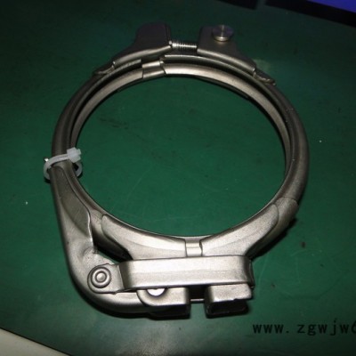所谓风管卡箍是用一种管道专用材料抱住或箍住另外一种管道材料的构件,它属于五金中的紧固件。卡箍主要有三种,一、排气管道卡箍,二、通风管道卡箍,三、除尘管道卡箍。是一种适用于圆形风管采用抱箍式连接的无法兰风管,由风管、抱箍、锁紧机构、V型密封圈组成,抱箍呈“__”型,对应包住风管管端的凸边,并用锁紧机构固定,实用新型无外突法兰机构,利用抱箍的弧形面包住风管管端的凸边(管口机械翻边宽5MM-7MM,人工焊接翻边尽量控制在5、6MM,管道壁厚0.6、0.8、1.0、1.2、1.5、2.0MM),连接紧固,密封效果好,方便实用。应用于圆形风管连接,是角铁圆法兰的更新换代产品,具有角铁圆法兰不可比拟的优点。标准组件设计,通过管件的灵活搭配,以抱箍,或者卡箍法兰等连接成任意形式和方向的输送管道。形成高质量、高气密性、高强度的抱箍式连接各类金属粉体物料输送管道以及通风除尘管道。改进了传统的粉体管道制作和安装工艺,使粉体管道的安装简洁、便利、美观。经过技术革新,针对国内现状,改善国内单一的法兰连接管道模式,使用卡箍式快速连接法兰,在提高工程项目管道安装速度,提升粉体、棉料输送效率,提高通风排风、除尘管道输送品质,改善空调系统空气质量方面提供了一种全新的“解决方案”。产品规格只要有:φ80、φ100、φ125、φ150、φ160、φ200、φ250、φ300、φ350、φ400、φ450、φ500、φ550、φ600以上,管道均按外径算,其它美标、德标规格可客户要求尺寸定制另开模。(手柄式内带气密胶条,材质有镀锌、不锈钢。对开两半内六角螺栓式内不带胶条,材质只有镀锌。)