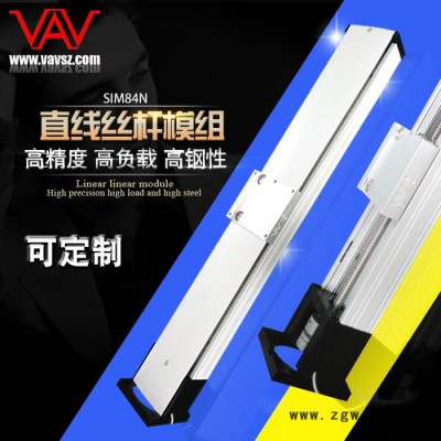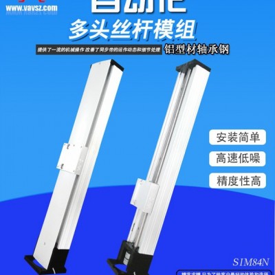SIM84 精密线性模组主要应用在我公司三轴运动平台上的Z轴,属于丝杆传动(普通丝杆),一般导程在20mm,电机转一圈的距离;标准型采用的是步进电机,型号:57HS09/57HS22。