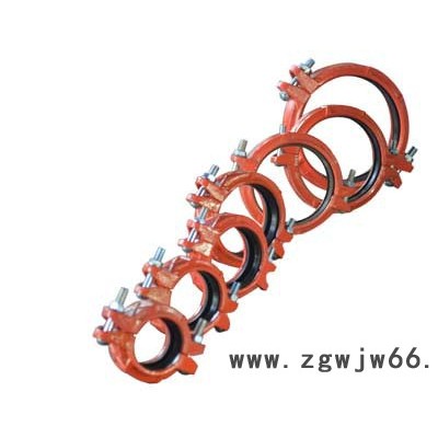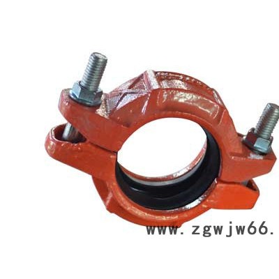 潍坊晟峰机械配套有限公司生产的卡箍采用球磨铸铁材料,具有耐腐蚀、强度高、延展性好、韧性好,同时具有较强的防震吸震等性能。该卡箍采用压力相应式密封圈套入两连接钢管端部,卡箍内缘嵌入管道端部的环形沟槽中,保证管道的密封连接。挠性接头的卡箍内缘嵌入管时,设计成有一定的间隙,使得管道连接后允许放产生一定的轴向位移和侧向偏移。