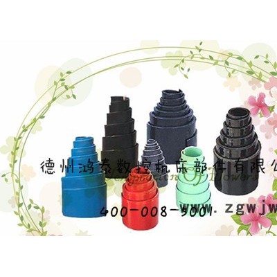 螺旋钢带保护套采用**弹簧钢带经热处理制造而成,对滚动丝杠、轴、杆类零件实行保护。保护套通过安装在被保护件二端的对中法兰,与被保护件实行无接触联接。该保护套与对中法兰之间联接安全是依靠它本身的预压缩弹力而实现的,因此在工作中运行稳定、伸缩自如、噪音极低,其表面呈黑色光泽,与机床上大部分法兰件协调。也可按用户要求制作不锈钢手白色保护套。