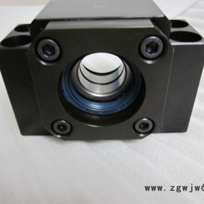 ◎支撑座有8个型号,对标准滚珠丝杆库存品的轴端、成品,预备了标准化的支撑座EK、 EF、FK、FF型,对一般滚珠丝杆预备了标准支撑座AK、AF、BK、BF型。固定侧装有经预压调整的JIS5级或P0级的角接触滚珠轴承,可依选用螺杆等级做**经济的搭配。高精度稳定的回转性能。