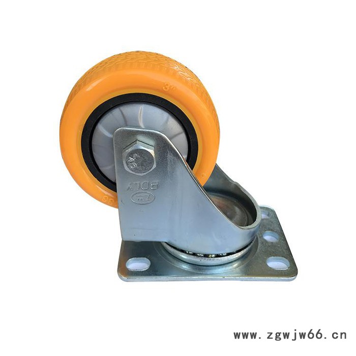 聚氨酯万向轮 聚氨酯万向脚轮 橙黄色聚氨酯万向轮 足王脚轮