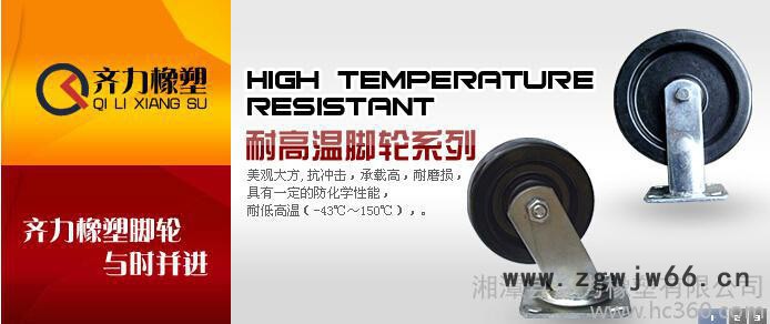 湘潭县齐力橡塑有限公司是生产脚轮,工业脚轮,聚氨酯脚轮,工业橡胶脚轮,电木轮,耐高温脚轮,酚醛树脂脚轮的专业厂家,公司生产的工业脚轮质量保证,价格实惠。咨询热线:13873238327