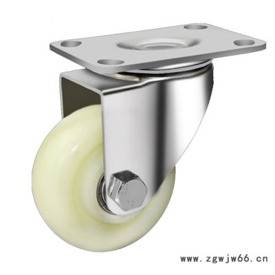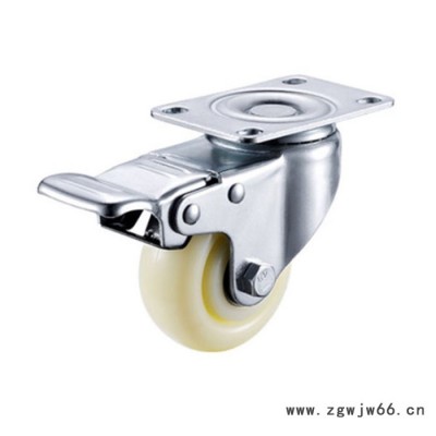 轮子的硬度越高,载重越高。推行转动也更加灵活。尼龙脚轮属于硬性材质的脚轮,它的硬度比其他材质脚轮硬度高,所以载重高,拥有很高的机械强度。软地面适合硬轮子,尼龙脚轮灵活,防尘,省时省力,承重力强,坚固经久耐用,易推,耐磨,易用,稳定,安全。