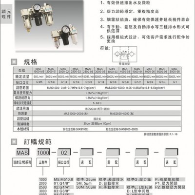 | 品牌 | 台湾匡信MARTO气动元件三点组 合空气调理组合MAS配件系列三联件 |
