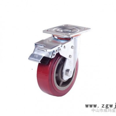 产品名称:重型活动带侧刹红色双轴PU脚轮