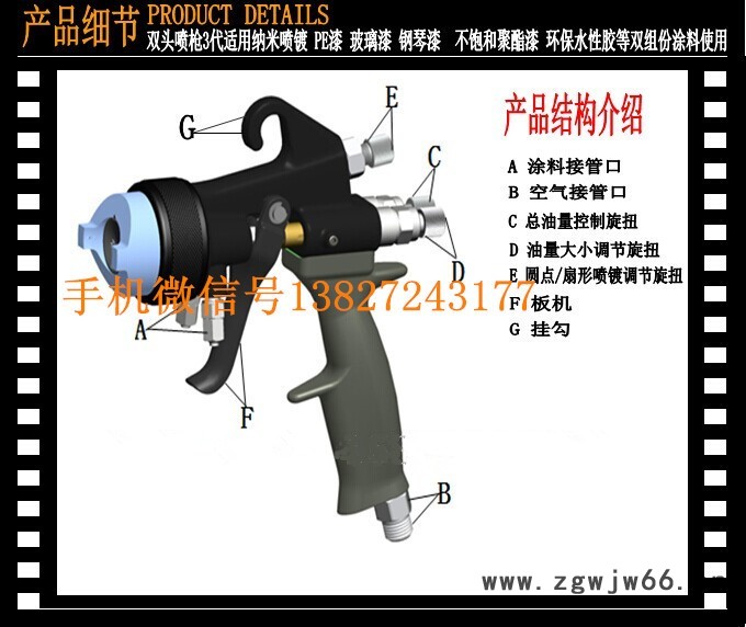 | 类型 | 外混式、双组份喷枪 |
