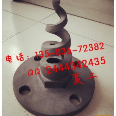 碳化硅螺旋喷嘴工作原理,螺旋喷嘴是众多喷嘴中**有特色的一种。随着连续变小的螺旋体,浆液不断经螺旋线相切和碰撞后改变方向成片状喷射成同心轴状锥体,不同层椎体喷射面流线与喷嘴轴心的夹角逐层减小,而且液体在从进入喷嘴腔体到出口的通道内均没有受到任何阻碍。且在很低的操作压力下仍具有很高的吸收效率,获得了脱硫系统的普遍认可。