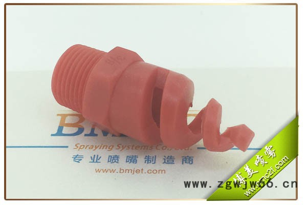PP螺旋喷嘴—雾化喷嘴通过与连续变小的螺旋面相切和碰撞后,变成微小的液珠喷出而形成雾状。喷嘴腔体内从进口至出口的流线型设计使得阻力系数降至**低,因而螺旋喷嘴适用于各种岗位。例如:化工、环保、电力、纺织等众多工业领域,特别是烟气脱硫除尘行业应用更为广泛。其耐磨性、耐腐性、成雾性、防堵性已被该行业众多用户所接受。