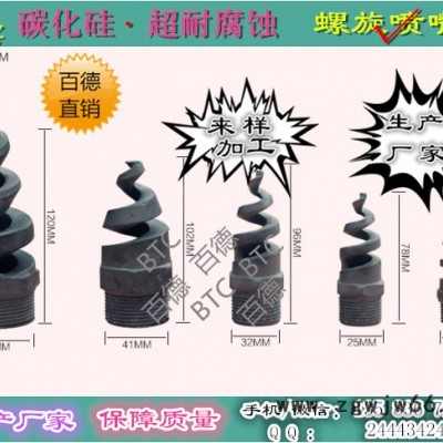 碳化硅螺旋喷嘴工作原理,螺旋喷嘴是众多喷嘴中**有特色的一种。随着连续变小的螺旋体,浆液不断经螺旋线相切和碰撞后改变方向成片状喷射成同心轴状锥体,不同层椎体喷射面流线与喷嘴轴心的夹角逐层减小,而且液体在从进入喷嘴腔体到出口的通道内均没有受到任何阻碍。且在很低的操作压力下仍具有很高的吸收效率,获得了脱硫系统的普遍认可。