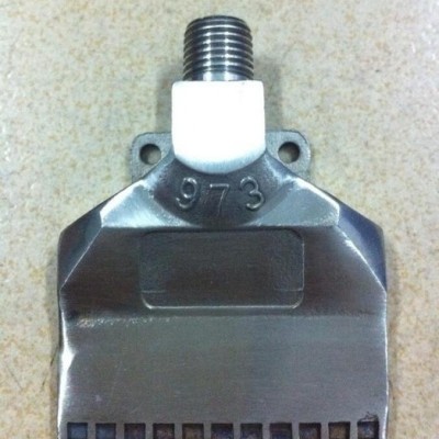 AA727系列吹风喷嘴采用射出成型并结合超音波和热板熔方法使该类喷嘴具有良好的消音,整流的优点,吹风效率明显高于传统风刀。该类喷嘴设计有多个柱形喷射气孔,空气由此吹出而形成扇形和圆形空气流,其内部结构设计符合空气动力学原理,有效降低了运行时的气流,确保了吹风喷嘴在降低工作噪音和空气耗量的同时也能获得高气流冲力。此类喷嘴对于局部,内孔,长距离的吹扫应用比较广泛。适用于1/4英寸外螺纹连接头,并设计有定位孔(ABS喷嘴),便于喷嘴的并排安装,其形成的组合式风刀能产生有效的空气帘。该类喷嘴一般提供ABS塑料,铝合金或不锈钢材质。