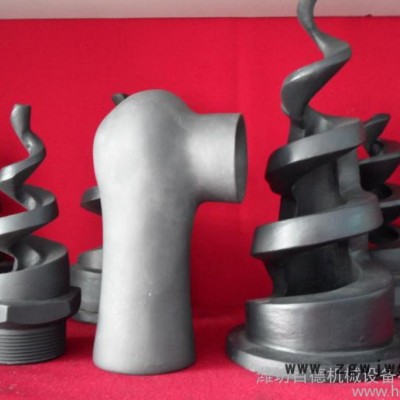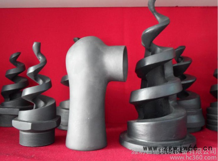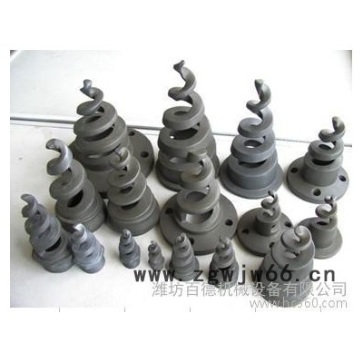 碳化硅螺旋喷嘴是众多喷嘴中**有特色的一种。随着连续变小的螺旋体,浆液不断经螺旋线相切和碰撞后改变方向成片状喷射成同心轴状锥体,而且液体在从进入喷嘴腔体到出口的通道内均没有受到任何阻碍。且在很低的操作压力下仍具有很高的吸收效率,获得了脱硫系统的普遍认可。