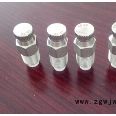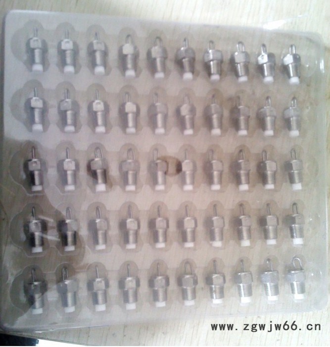 喷嘴,喷头 二十四、精细雾化喷嘴 产品名称: 空心锥形精细雾化喷嘴 产品特点: 采用特殊设计,特种材料,高精密制造生产。 喷出雾滴细微:10-30 微米,喷射角度:80—115度,出水量:2.4--7升/时,系统供水压力:3-14Kg,每个喷嘴喷雾覆盖面积3~5平方米,降温能力:5~10℃。 喷嘴抗老化、耐寒、耐光照、耐酸碱、不长苔、不易堵塞,并且清洗方便使用寿命长。 雾粒直径在10-30微米之间超细微雾粒中含有大量的负氧离子,增加空气的含氧量,极大地改善人们生存和居住的环境 一般应用:厂房、办公楼、家庭、园林园艺等空气加湿、降温使用。 制作材料:可根据客户的不同要求采用不锈钢(SS304、303、316),黄铜(BRASS),塑胶等不同材料。 特别介绍:精细雾化喷嘴是无需使用压缩空气、只利用液体压力即可形成非常微细的空心锥形雾化喷雾的喷嘴。 喷雾分布均匀,压力和流量适用范围较广。 生产非常细小的颗粒,形成雾状喷雾效果。 喷头、内芯及滤网便于拆卸,以进行检修或清洗。 大多数型号均配备内置滤网。