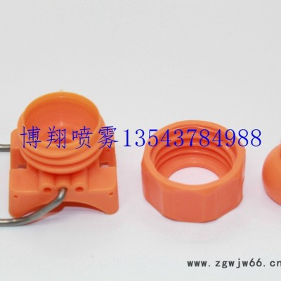 1、 夹扣型: 夹扣式喷嘴由夹扣底座(开孔φ14-20mm)、O型密封圈、可拆螺纹帽盖、可调球头三件组成,该类喷嘴底座喷嘴有三孔位预留,此结构可以配合双夹扣和单夹扣调节管子外径不同时的夹紧度。