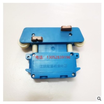集电器、又称受电器或采电器是起重机滑动受电装置。它通过碳刷与滑触线里多级铜导轨的滑动接触,将电能直接传导至行车起重机端梁电箱,从而实现系统的移动供电。