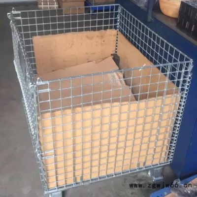 仓储笼又称可折叠式仓储笼:采用钢丝焊接而成,底部以U形槽钢焊接补强;可折叠,可安装万向轮,外形美观、结构坚固、移动方便、装载能力大的特点;可叠四层、以实现仓储的立体化;广泛应用于生产制造企业和大型仓储式超市中;表面镀锌,美观抗氧化,可长时间使用;周转、存放和回收均不污染环境;可与集装箱配套使用,是木质包装箱的换代品。